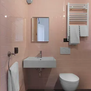 Some rooms have private bathrooms with a bidet and a tub. The units also face the courtyard.